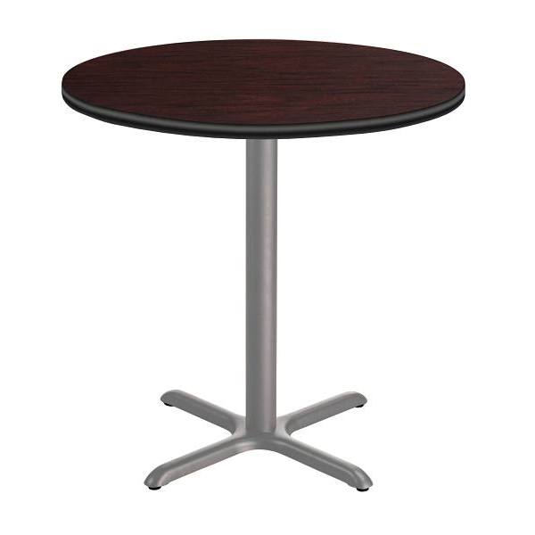 National Public Seating 36"R Café Table 42"H, X Base Mahogany Top, Grey Frame