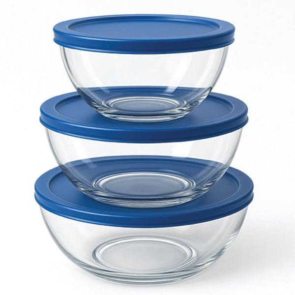 6PC GLASS MIXING BOWL SET - BLUE LIDS