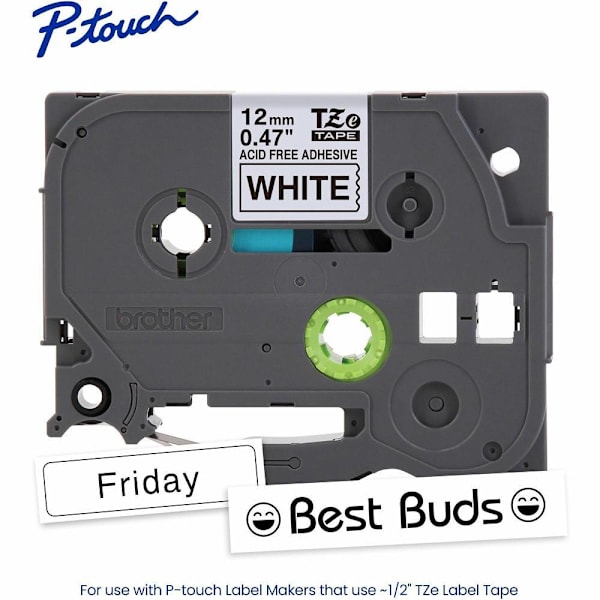 • Brother Genuine Tzeaf231 Label Tape Black Print On White Acid Free 12Mm X 8Mm