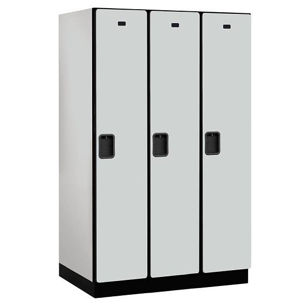 Salsbury Industries 15" Wide Single Tier, 3 Wide Wood Lockers, 24" Deep, Gray