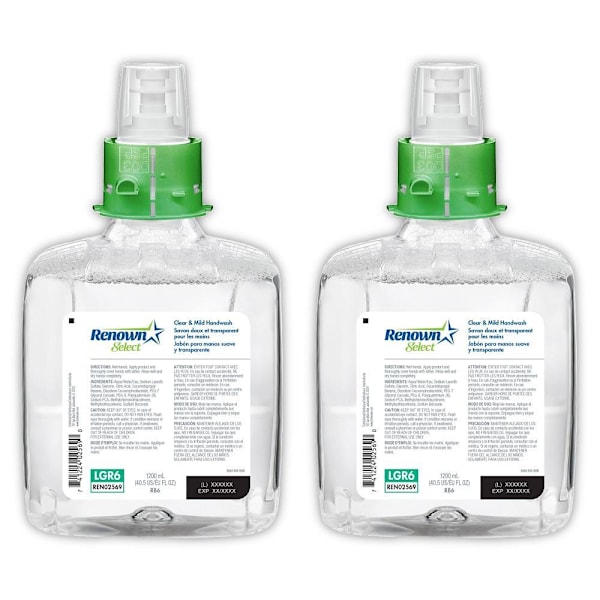Case includes 2 Renown Select RB6 Clear and Mild Foam Hand Soap 1200 mL Refills