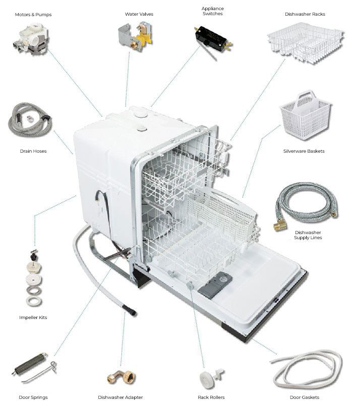 Repair dishwashers in one day with right parts and tools. Find the repair part you need using this schematic diagram. Select the part image go to the products.